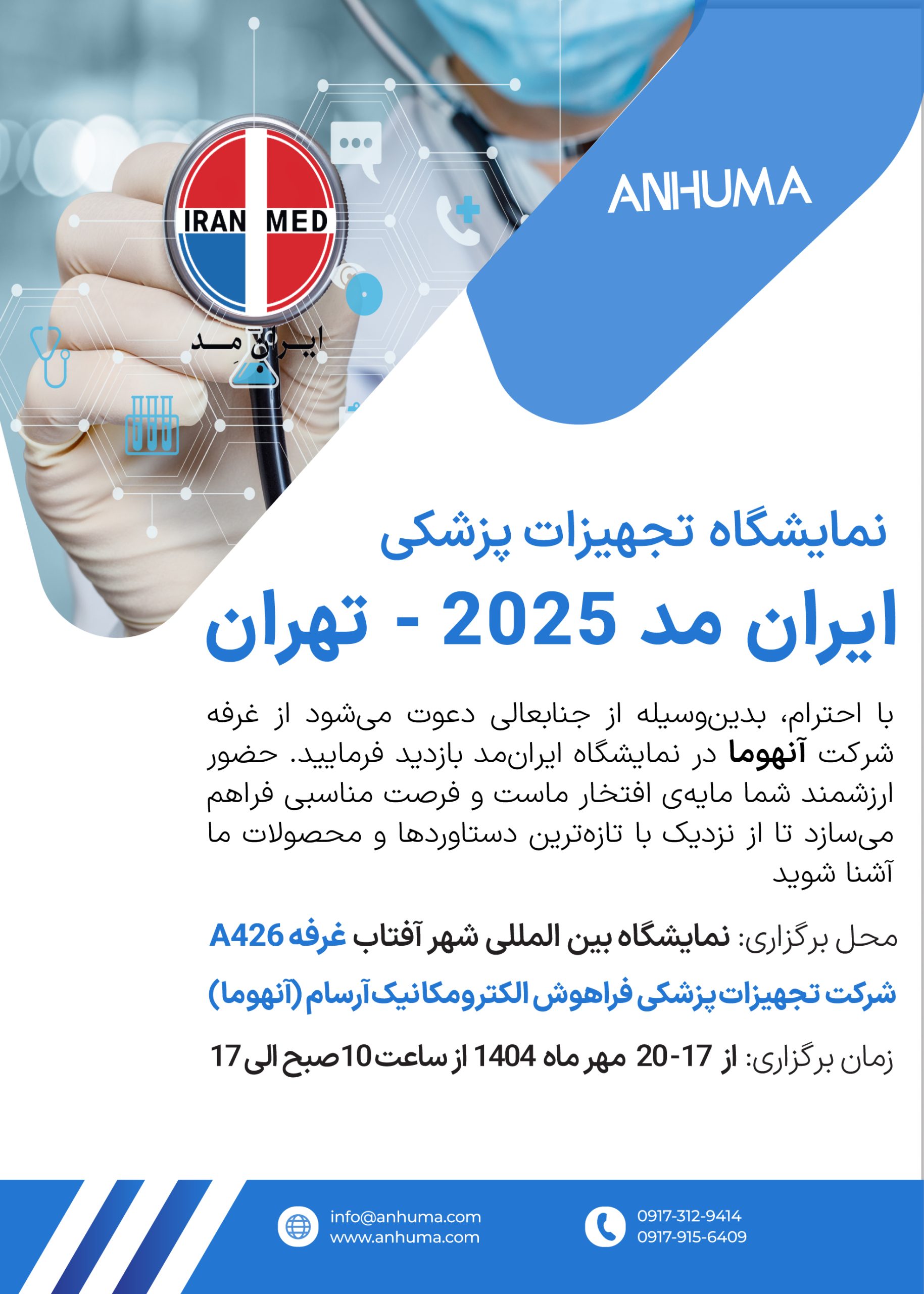 با افتخار شما را به بازدید از غرفه آنهوما در نمایشگاه بین المللی تجهیزات پزشکی ایران مد دعوت می کنیم.